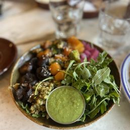 This is one of my favorite breakfast/brunch spots in San Francisco. Service is top notch and all the workers are friendly. Prices are on par, or competitive. And the food is prepared wonderfully both visually and taste-wise. I ordered: THE BIG SPOON . . . . . . . . . . . . . . . . . . . . . . 25 eggs any style, bacon, potatoes, toast, pancakes, fruit. This is their version of the LumberJack breakfast. Everything item you could want except maybe some sausage or a slice of ham would really complete this meal. But still an all around solid entree to order. FRIED CHICKEN & BISCUIT . . . . . . . . . . . . 17 buttermilk biscuit, hot honey, honey butter. I liked this item but I actually think it is better visually than taste-wise. Needed some hot sauce or something to give it more kick. Maybe some more salt. But as mentioned at the beginning, service is excellent. The casual ambience is perfect for brunch. And all the food that leaves the kitchen looks delicious.